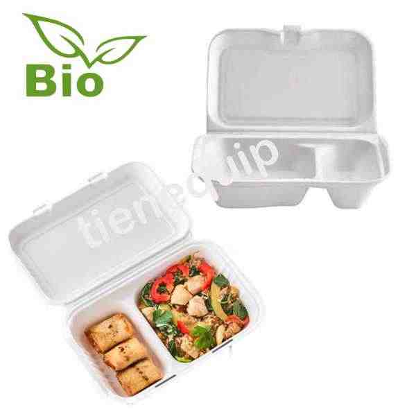 Portacomida caña azucar bio 250x155x80 mm 2/Compart 50 uds